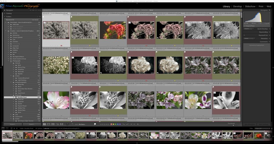 - I use picks to identify the images I will work on; you can “pick” or “reject” any of your images and then filter on those selections; it’s a fast way of identifying the keepers