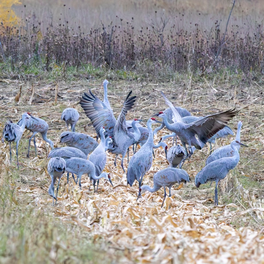 I’m still recovering from major surgery this past September. But I’m mobile enough now to get out of the house for some photography, so I decided I would go out to a local area known as the migration pathway for Sandhill Cranes. These are large birds, similar to other species of cranes, with huge wingspans and beautiful graceful flightlines. Many photographers in our area “flock” to the farmers’ fields where these birds stop on their journey, to fuel up on the remnants of corn fields.