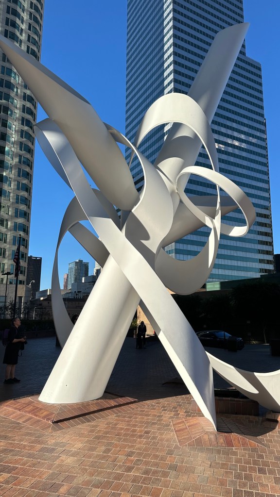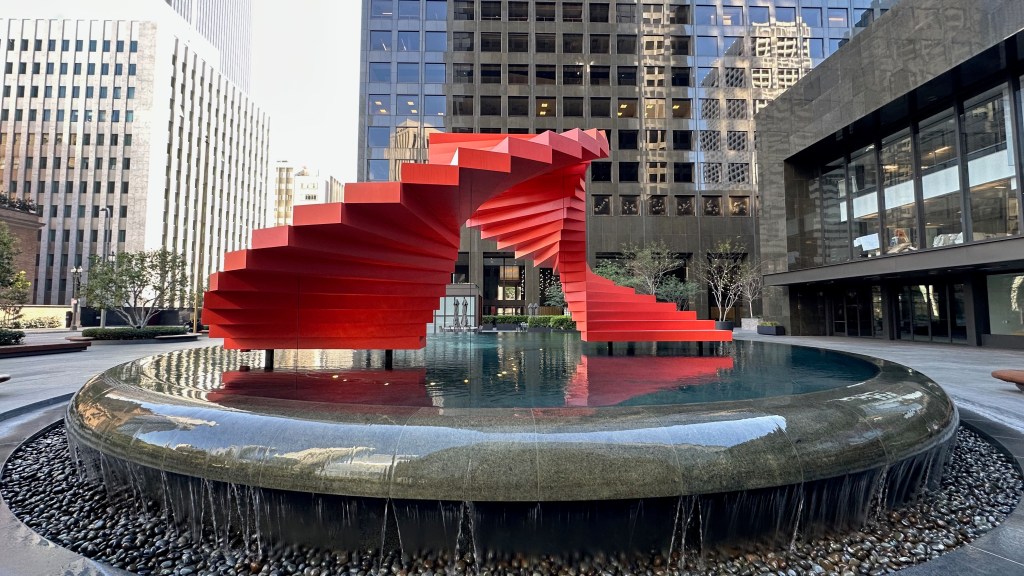 That was a long day, and I have to say the old bod’ was starting to have a hard time keeping up. But some rest and we were back out again, this time to another philanthropic installation – the Getty Center, a $1.3B tribute to the oilman, nestled into the hills of Brentwood. I have never seen so much granite and travertine in my life, all of it apparently imported from Italy. Surprised they have any left. Back into the city afterward to see if we could capture some interesting abstract angles from a few wonderful sculptures and a hotel lobby. Interestingly, in all cases, we were asked to leave by the property owners – something that is always a risk when photographing on private property.