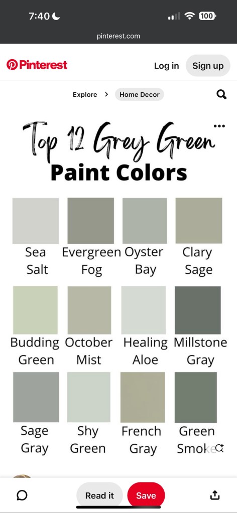 I took home 1/2 dozen sample pods of paint and happily slapped them on my walls to view in morning light, afternoon light and in warm artificial light. I don’t know about you, but when I edit a photograph and finally land on the look I want, I know it right away. That’s what happened here. My base colour was a lovely light grey known as “Balboa Mist”. I chose to pair it with a grey/green simply known as “Flora” that matched my love of green growing plants and gardens. My house is filled with indoor plants that help get me through the drab winter months and this splash of colour would make that even better.