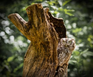 Eastern Screech Owl in Hollow Tree